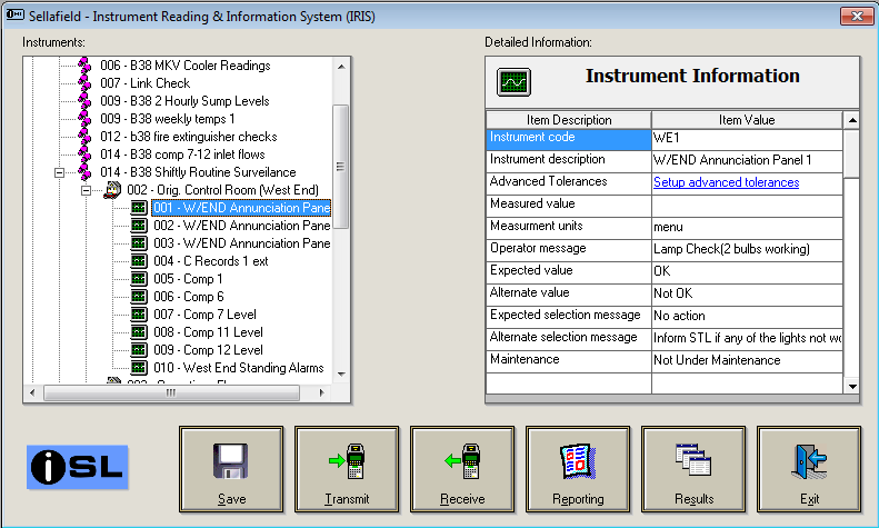 2005IRIS is an operator round system developed for Sellafield Nuclear Site. Operators carry out pre-planned inspection rounds using mobile devices and record readings and plant observations. These are then used to produce reports and semi-automated corrective action.