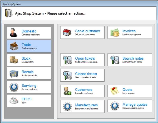 2012AJAX Shop is a complete stock management and shop sales Epos system. The system includes till and receipt printer facilities.